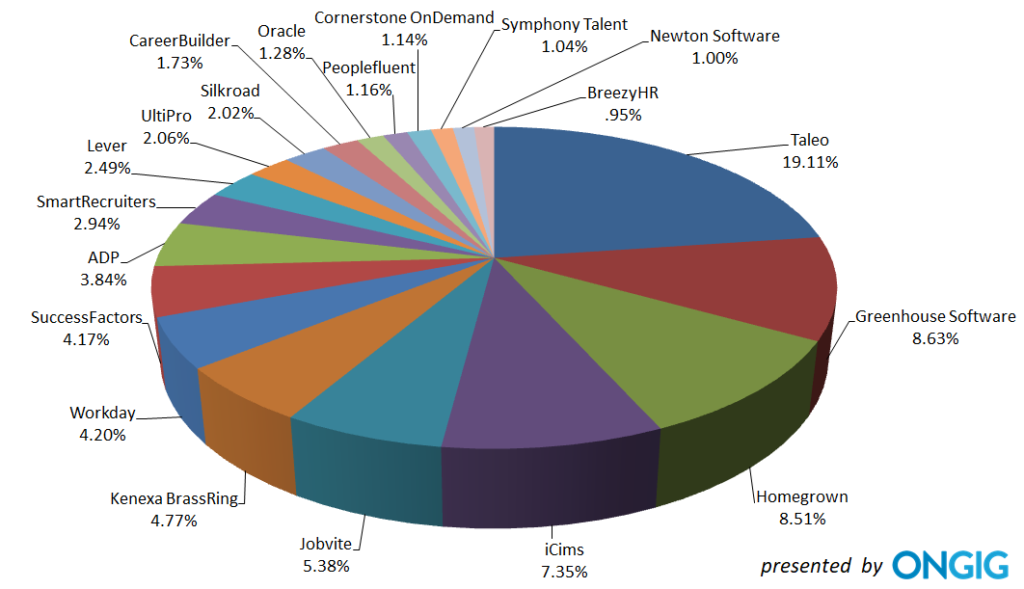 Pinpoint is an example of a modern ATS that has features for recruitment automation, candidate experience management, and diversity hiring. It uses cloud-based software that automates repetitive tasks like the screening of hundreds of resumes that are submitted to a company. The graph below shows the top ATS market share. Additionally, these are trusted and widely used systems.