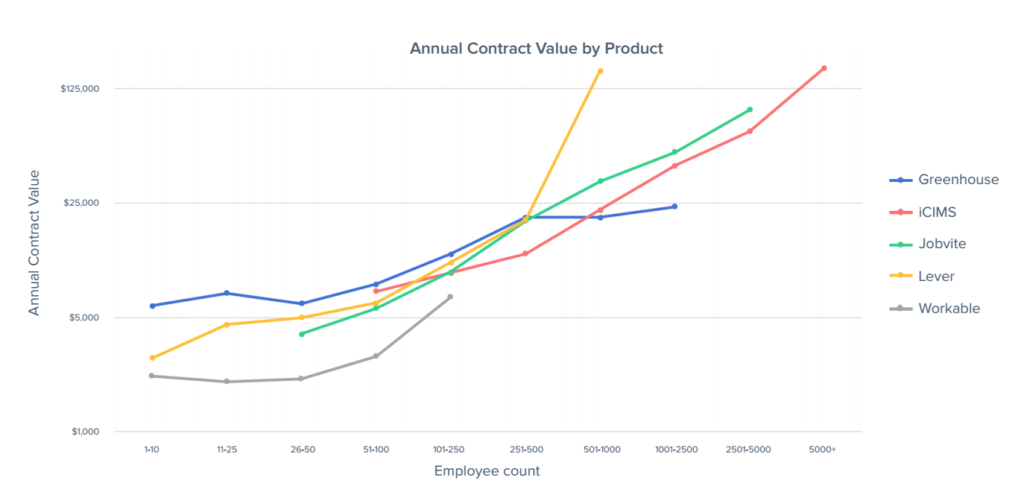 - Cost: The cost of implementing artificial intelligence can be a barrier for some businesses. AI-based systems can be expensive to purchase and maintain. However, the recent increase in the amount of ATS companies is starting to lower prices. The graph below shows the ATS pricing benchmark report. Before implementing an ATS, it is important to run a cost-benefit analysis on investing in one of these systems.
