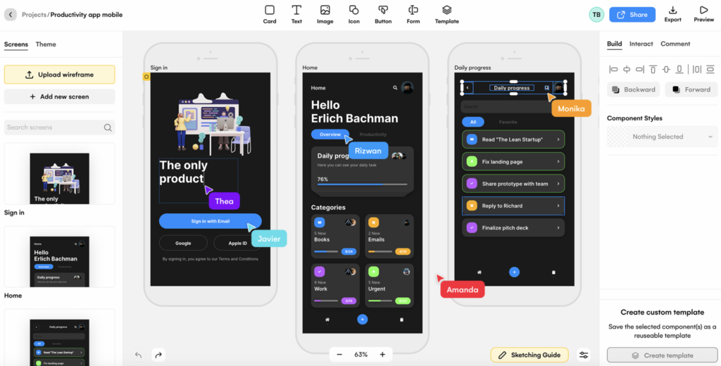 Uizard AI also offers a collaborative design feature that allows designers to work together on a project in real-time. The platform allows for multiple designers to work on a single design project simultaneously, making it easier for teams to work together and get projects completed faster. The tool’s commenting system also allows for easy feedback and collaboration, which helps designers stay on track and ensure that everyone is on the same page.