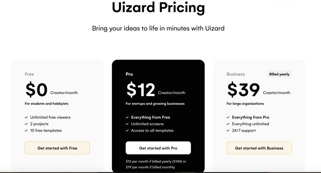 In terms of pricing, Uizard AI offers a freemium model that allows users to create a limited number of designs for free. For more advanced features, such as exporting designs, accessing premium templates, and removing the Uizard AI watermark, users will need to upgrade to a paid plan. The pricing is reasonable and competitive compared to other design tools on the market.