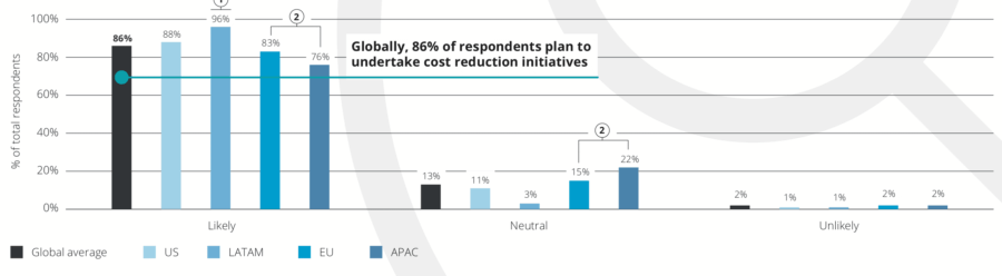 Figure 1. Likelihood of cost reduction over next 24 months (Source: Deloitte, “Thriving in uncertainty in the age of disruption).