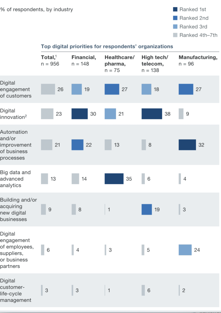 Figure 2. Digital products and services are the highest priorities of the management of large companies (Source: McKinsey, Cracking the digital code).